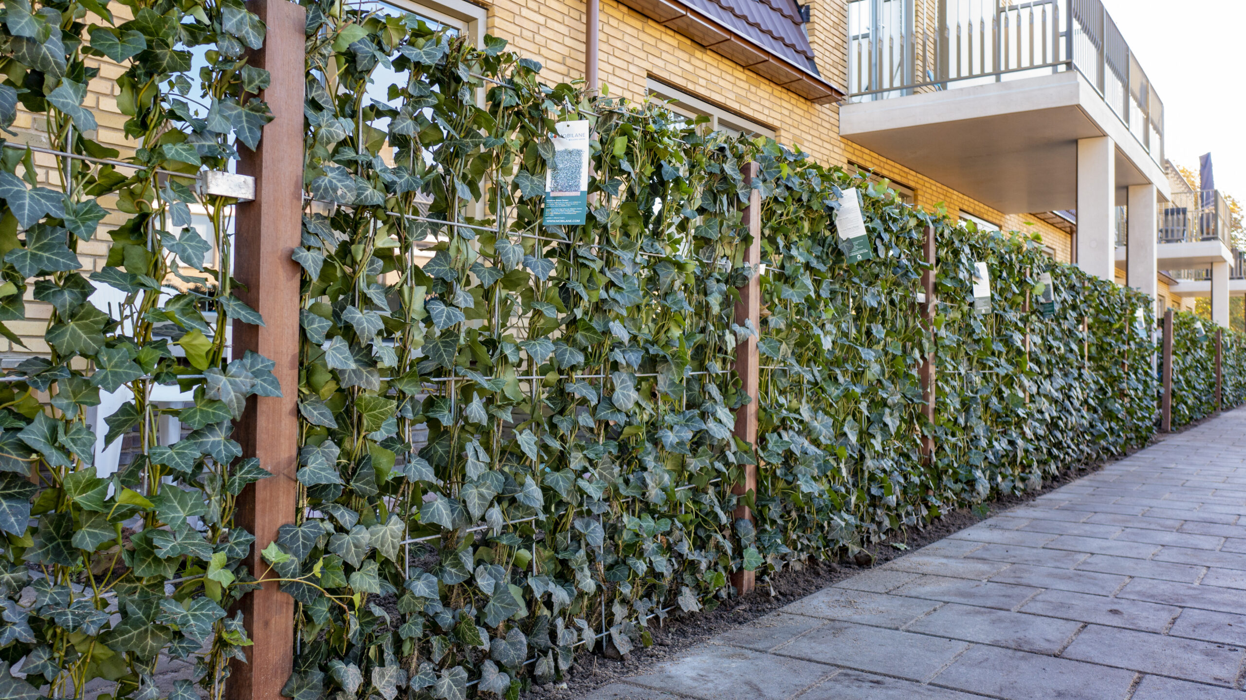 When creating a green hedge as a divider, it often requires several years of patience for the plants to grow dense enough to provide privacy. Our range of green screens from Mobilane offers a solution by allowing for the installation of individual panels that create an instant dense hedge, delivering the appearance of a well-established barrier.