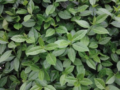A small, bushy evergreen shrub. Leaves are dark green and rounded and turn bronze-red in winter; rarely flowers.