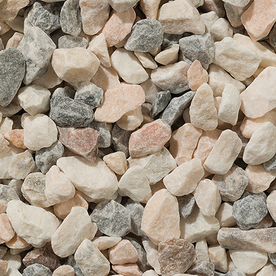 Flamingo is an uplifting mix of creams, pinks and light grey marble chippings that contain a natural sparkle. These beautiful chippings deepen in colour when wet. An eye-catching and unique product that works well as a contrast to darker materials as well as adding distinction to landscaping projects.