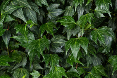 A vigorous evergreen climber. Leaves with with prominent veins and five lobes, main three narrow, elongated and forward-pointing, moderately dark green developing a purple flush in winter.
