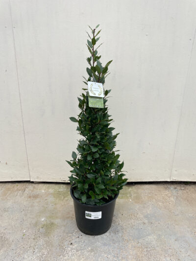 A large, erect, evergreen shrub with aromatic, narrowly ovate, leathery, glossy leaves up to 10cm long and 2-4cm wide. Dried or fresh leaves are popular flavouring in meal preparation. Flowers are 5mm small, pale greenish-yellow, in dense clusters. Fruits are oval berries 1.5 cm in diameter, glossy black when ripe