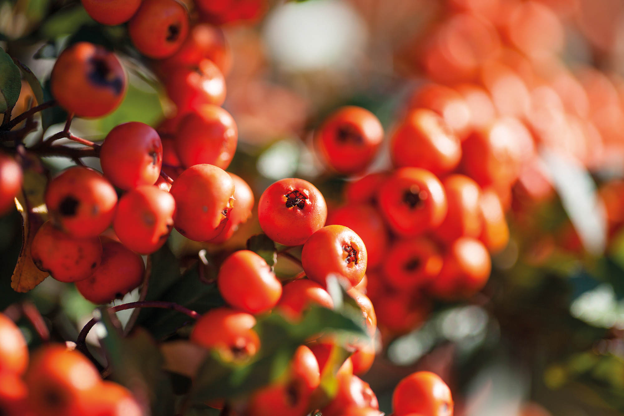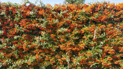 An upright to spreading evergreen shrub, with dark green leaves, spiny branches and dense clusters of small white flowers in late spring on the previous year’s growth. These are followed by a profusion of bright red berries in autumn.