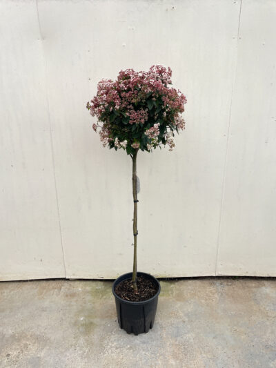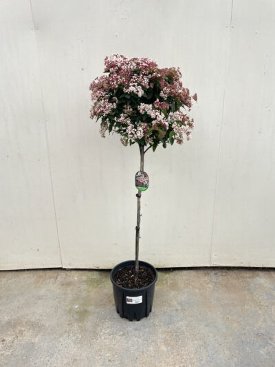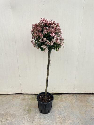 A Compact, Bushy, Evergreen Shrub To 2M With Dark Green Oval Leaves. Clusters Of Pink Buds Open To Small, Lightly Fragranced Creamy-White Flowers.