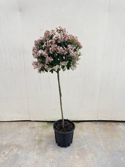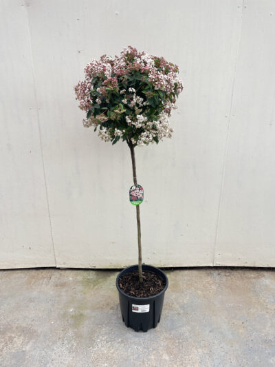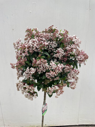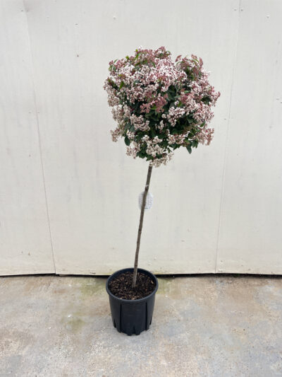 A Compact, Bushy, Evergreen Shrub To 2M With Dark Green Oval Leaves. Clusters Of Pink Buds Open To Small, Lightly Fragranced Creamy-White Flowers.